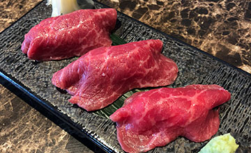 カメノコなど赤身の希少部位を使用した旨味たっぷりの和牛肉寿司